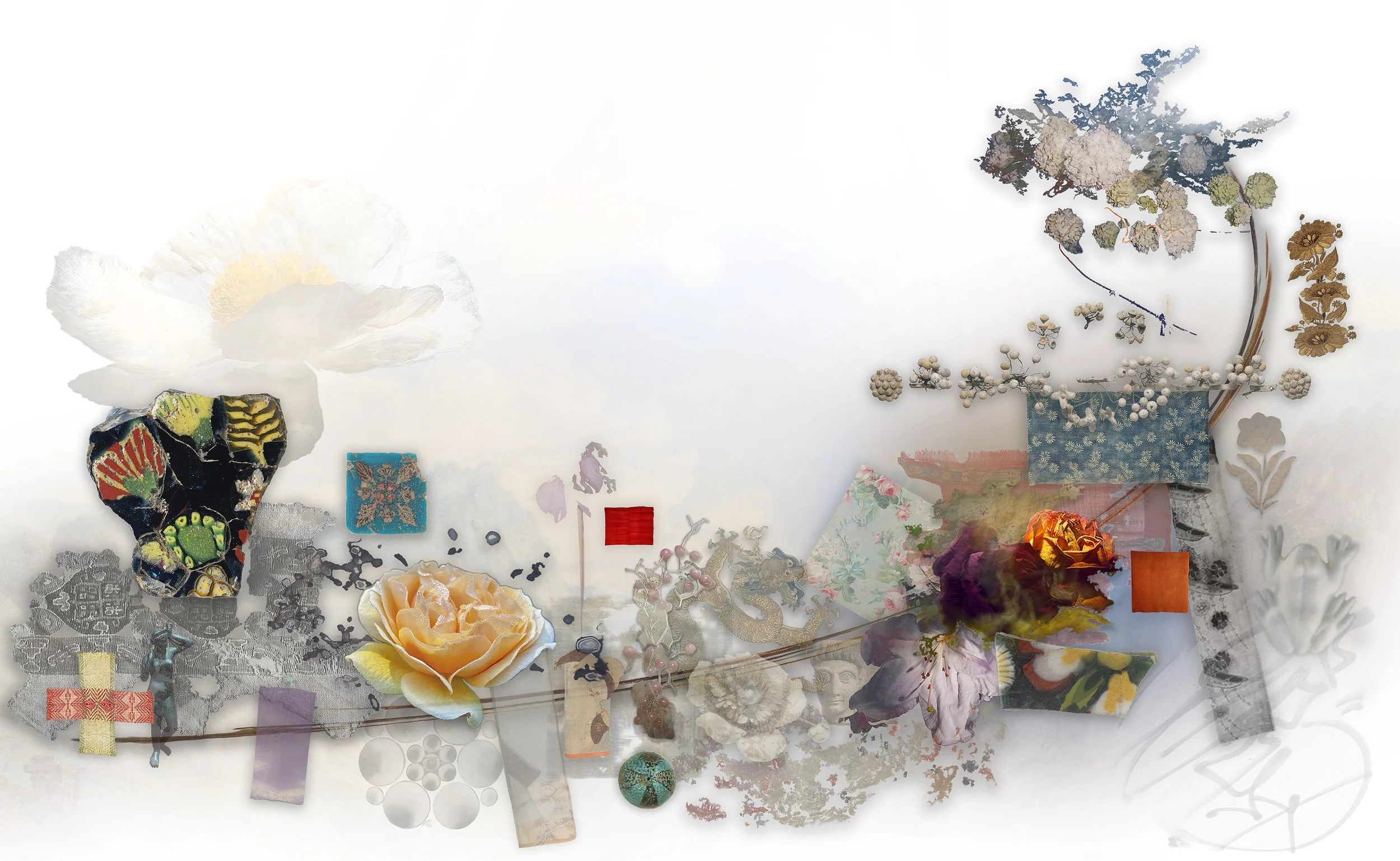 Every collage intricately weaves together layers and layers of images drawn from my own extensive library of photographs and paintings, complemented by elements from the work of artists from past centuries (available to public domain). I am fascinated by the creative constraints imposed upon them, and inspired by their remarkable artistry that flourished within those boundaries. This intertwining informs my current work capturing the nuanced interplay between past and present, beauty, and the cycles of life.